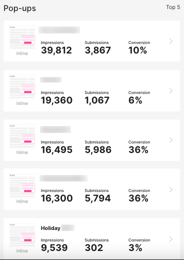 In the Forms section you'll see your top five best performing (most subscriptions) forms.