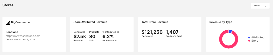 The Stores section populates data from your connected eCommerce integration, or provides instructions for integrating supported eCommerce integrations.