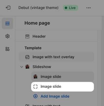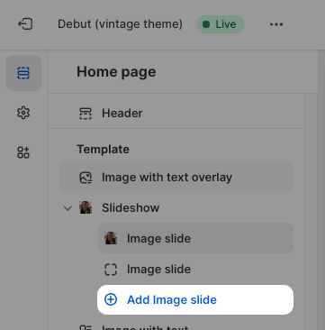 In the left sidebar, click Add Image slide to add another slide to your carousel, then repeat steps 1-9 for each new slide