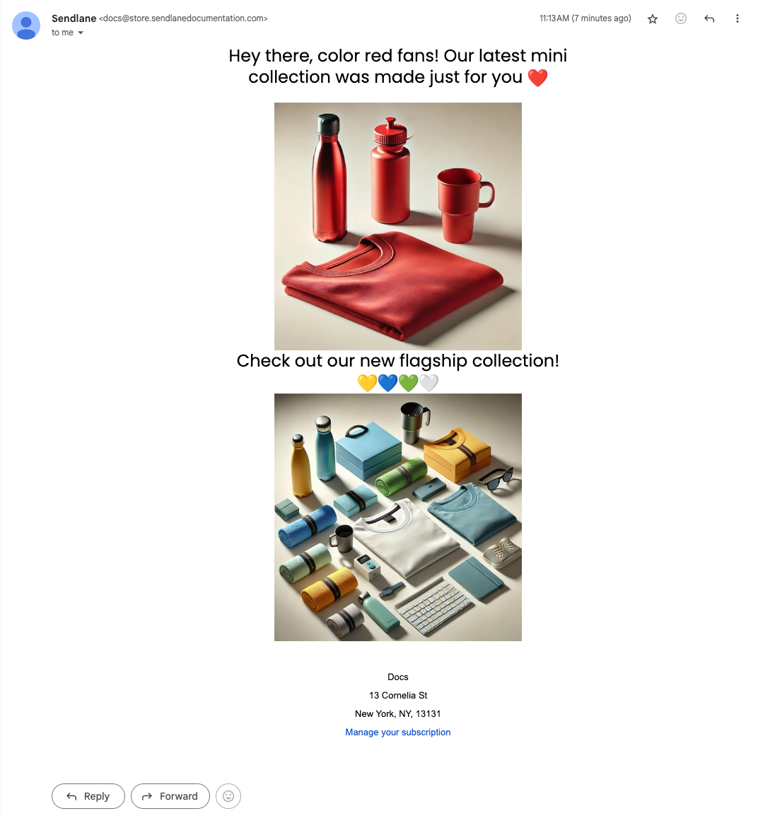 Contacts whose Favorite Color custom field is set to red will see the following in their inbox: