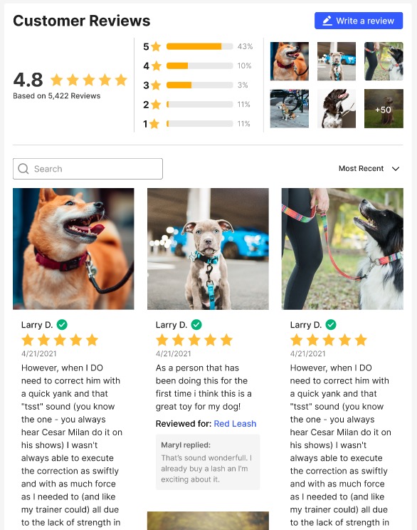 Verified Buyer Badge Color - Make verified reviews (review was submitted from a link in a review request Automation and is associated with a confirmed purchase) stand out with a pop of color that contrasts with the rest of the widget’s styling
