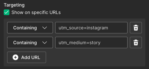 You can use UTM codes to display Sendlane Forms when website visitors reach your site from a specified source, such as your brand’s social media accounts.