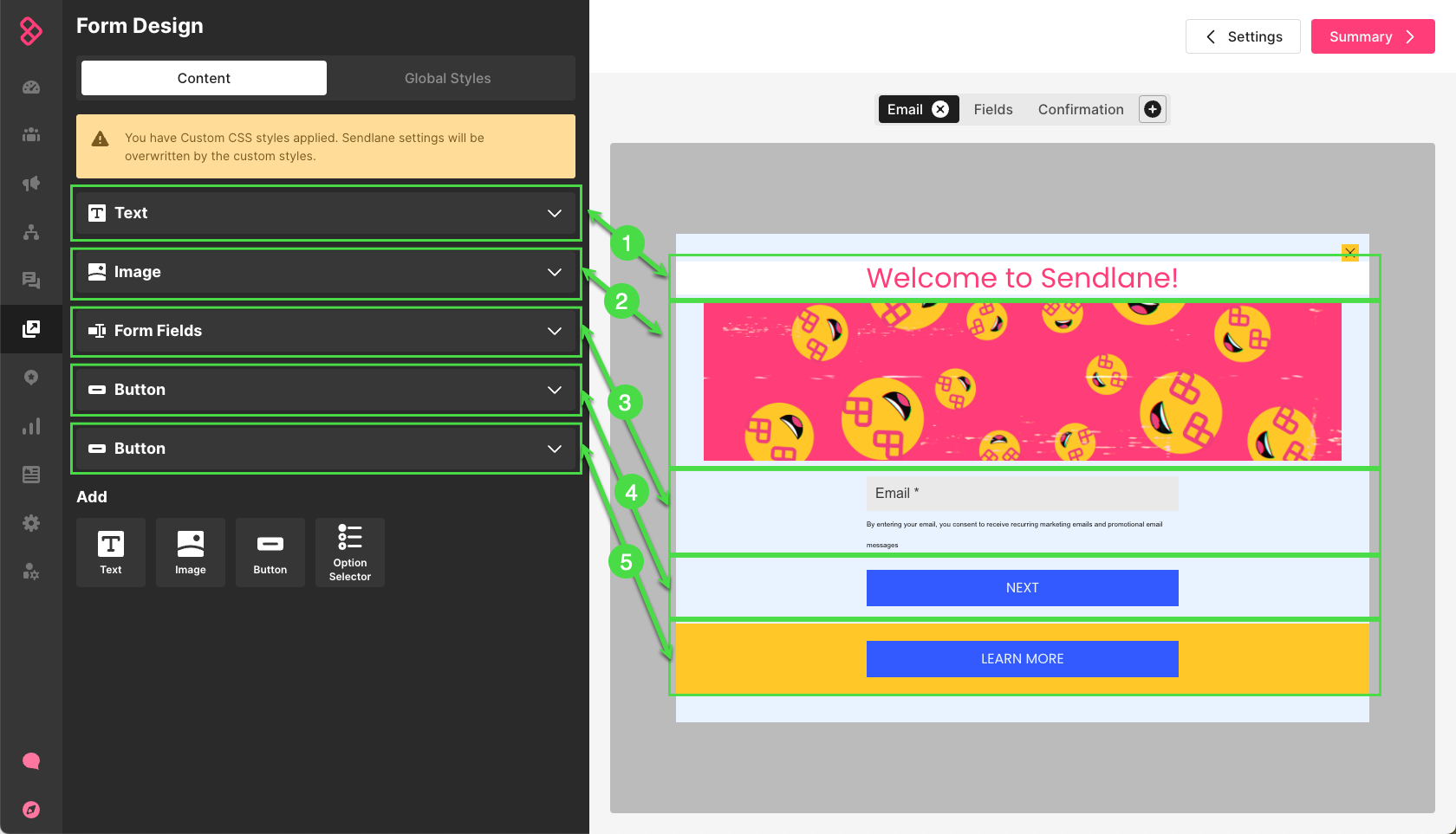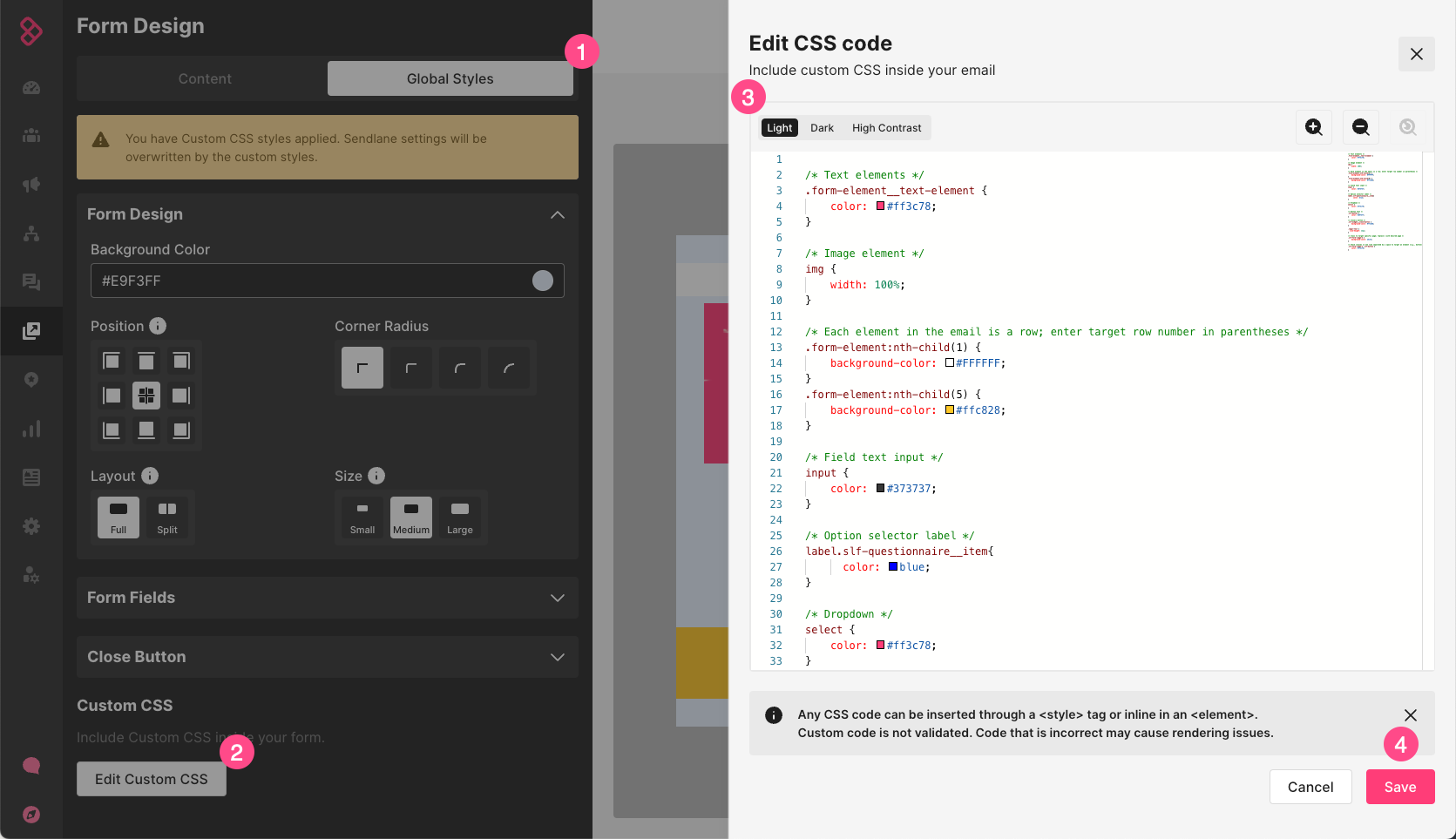 How to add custom CSS to a Sendlane Form