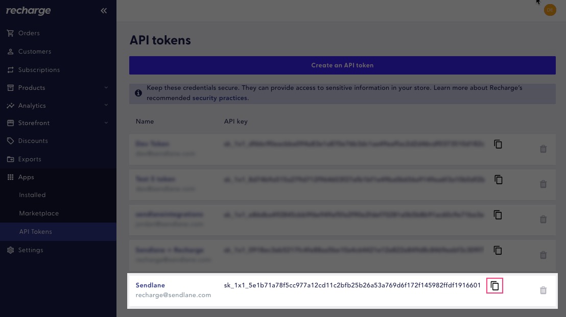 To generate your Recharge API keys: