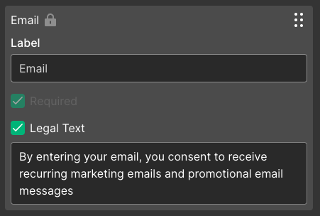 Add legal text to email form fields