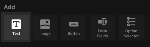 To add a text block, click the text Text icon: