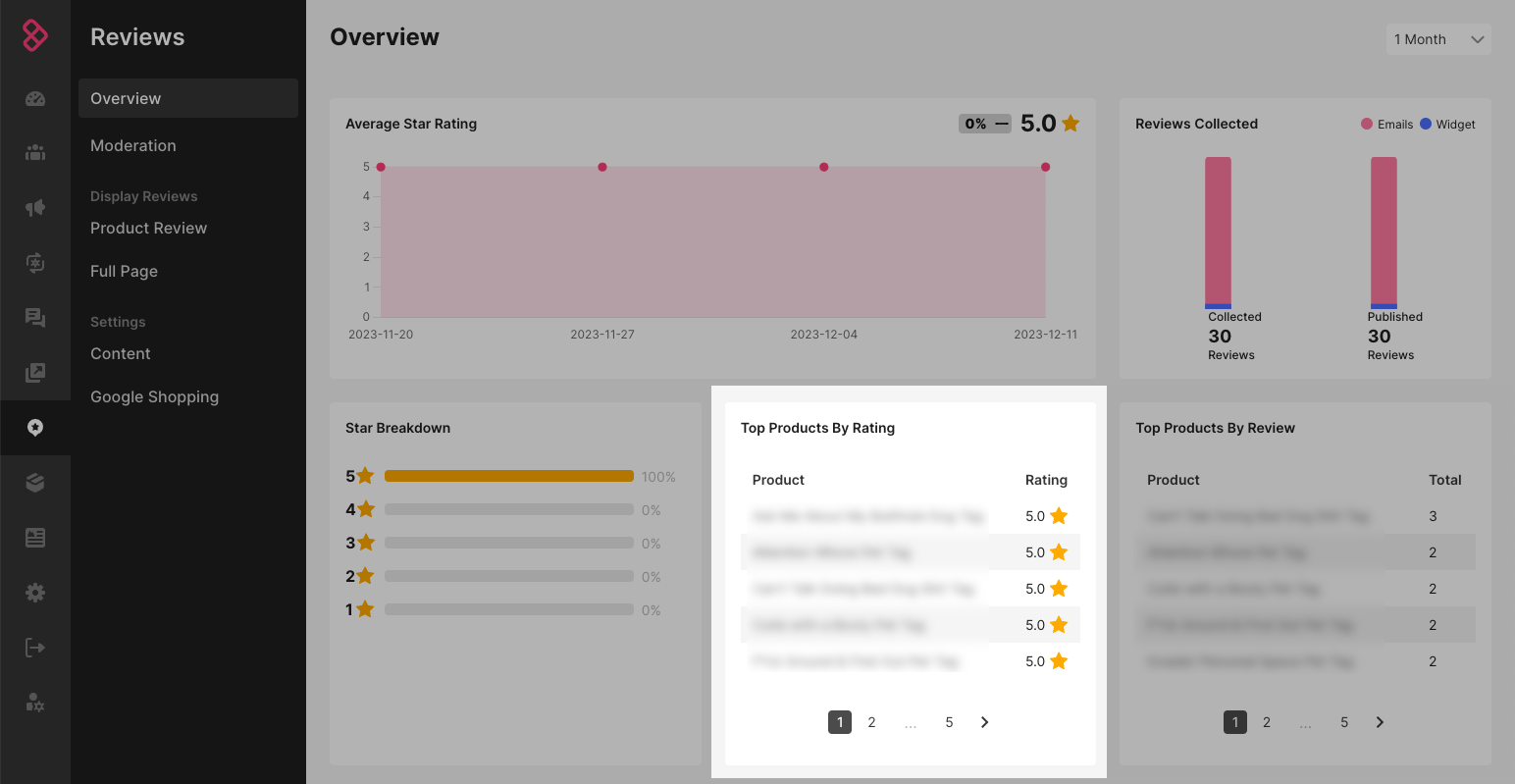 Head to the Moderation page to check out review activity and find out what customers are experiencing with your products that causes the number of positive or negative reviews to grow or shrink.