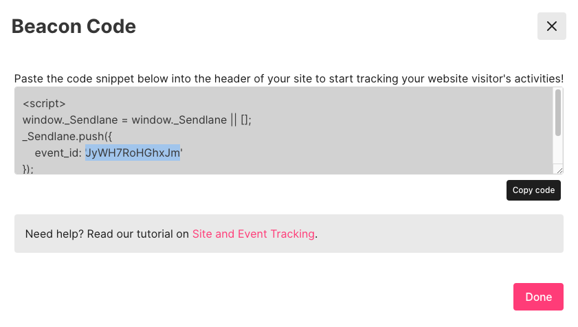 Copy the event ID from your Beacon general tracking code or event tracking code: