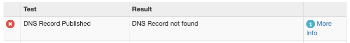 Once you've selected a subdomain, check it is not already in use by entering it into MxToolbox. The DNS Record Published test will return DNS Record not found if the subdomain is not already used. If you receive any other result, remove all DNS records from your intended subdomain OR choose a different subdomain.