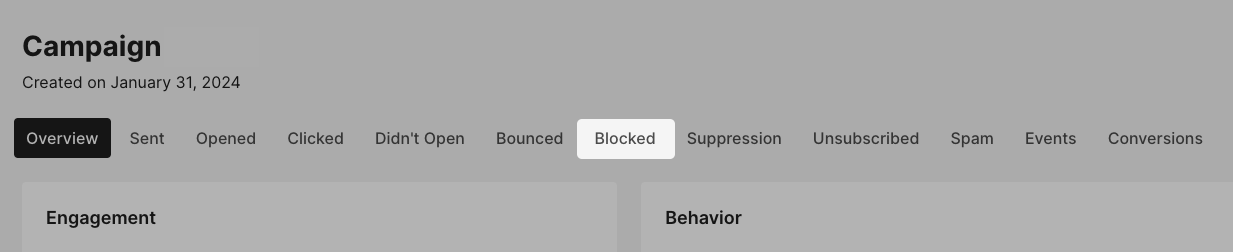 A list of contacts who did not receive the campaign will appear in the Blocked tab of your campaign report. Emails sent to contacts in the Blocked tab are considered not delivered.