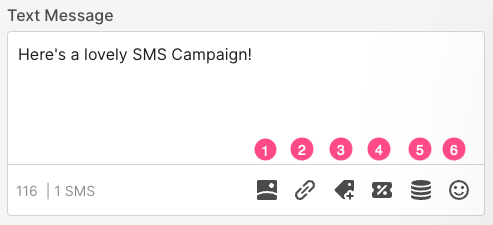 Read the following section to learn how to construct your SMS campaign message, and read 📄 Understanding SMS credit calculation for detailed information about the SMS credit estimates you'll see in the SMS message builder.